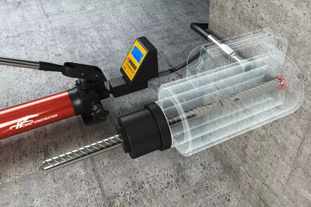 現(xiàn)場采用的檢驗設備可用專門的拉拔儀或用千斤頂、錨具、反力架自行組裝的拉拔裝置作拉拔試驗。但應注意設備的加荷能力應比檢驗荷載值至少大20%,并且能夠連續(xù)、平穩(wěn)、速度可控地運行。