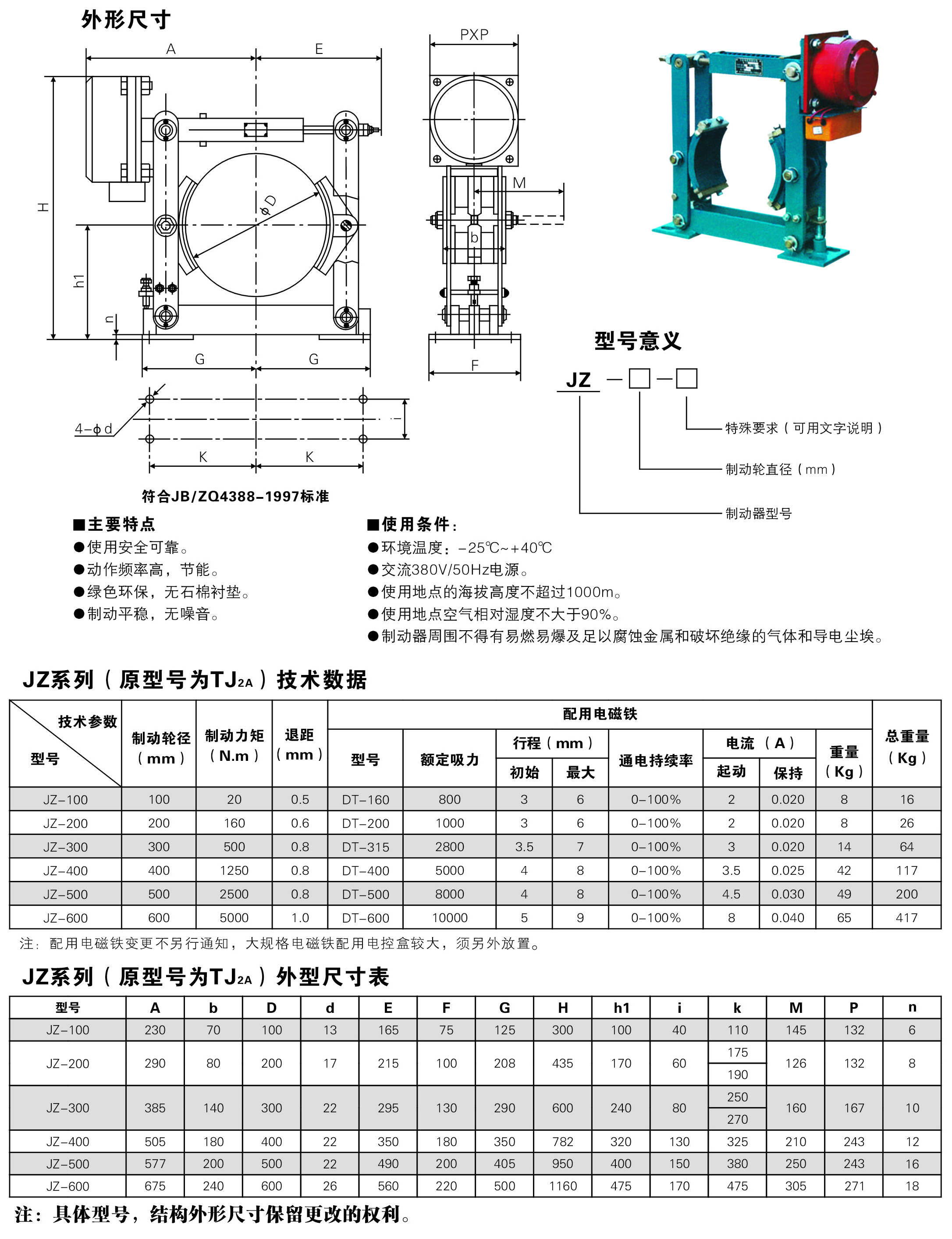 JZ系列(原型號為Tj2A)技術(shù)數(shù)據(jù)